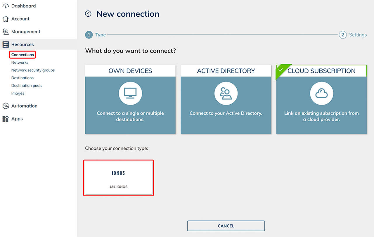 Connect 1&1 IONOS subscription