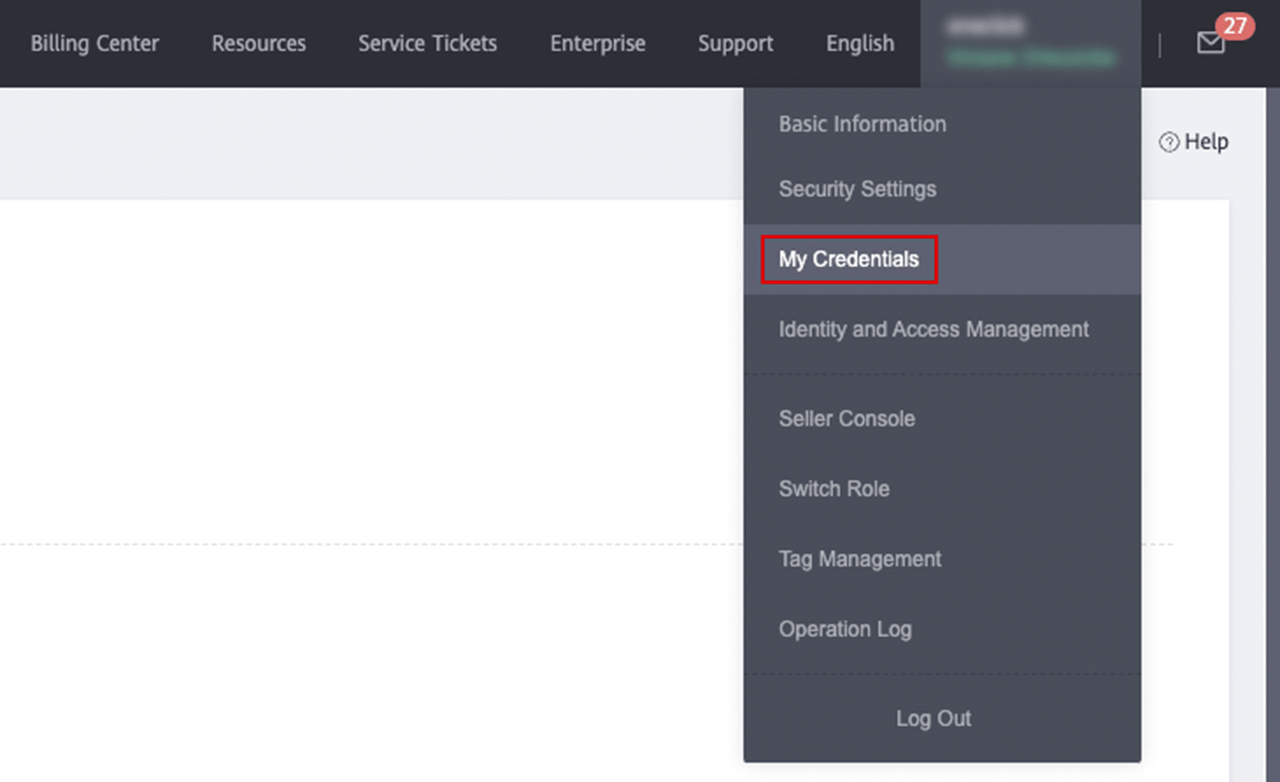 To do this, open the menu at the top right and click on My Credentials.