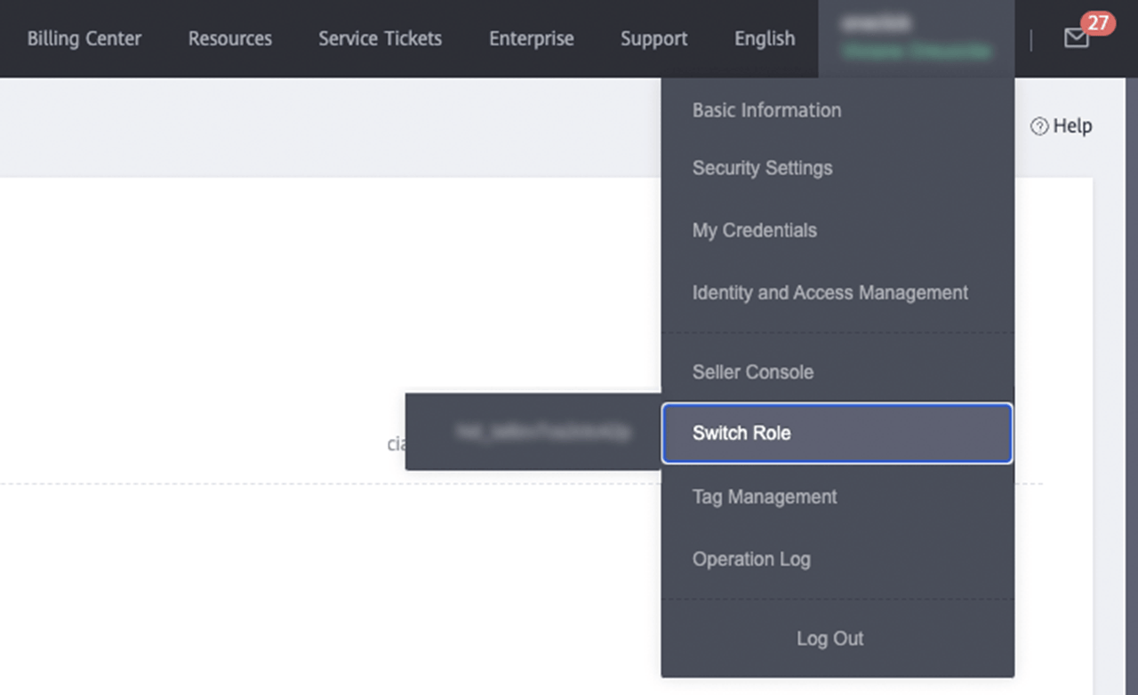 - Open the menu at the top right and click directly on Switch Role.