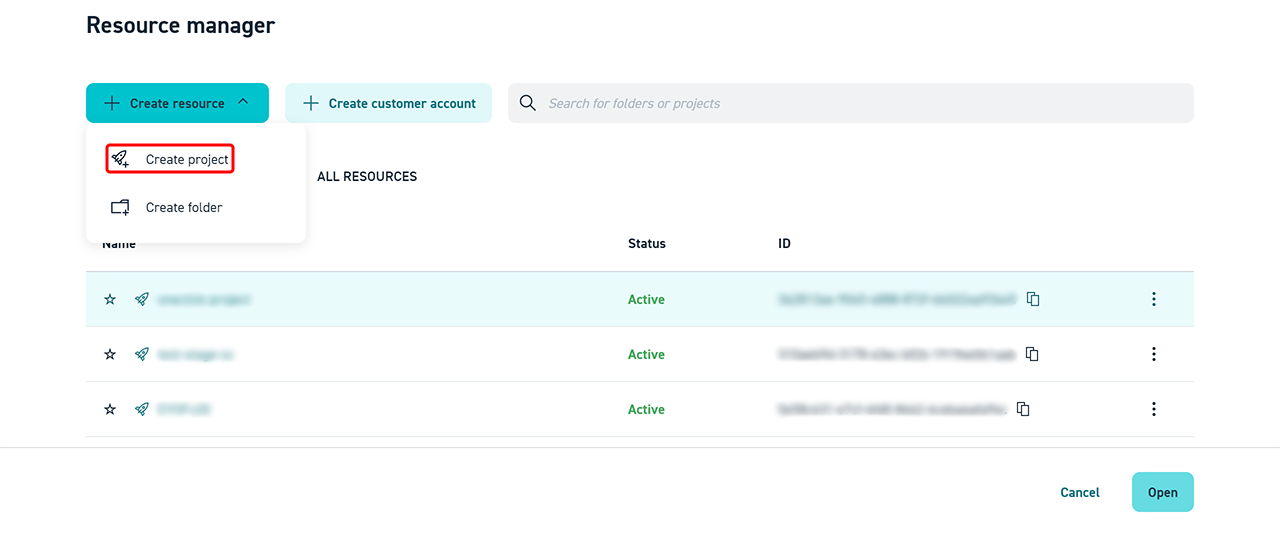 - Click Create resource and then Create project.