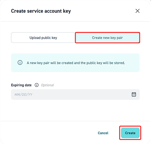 - Click Create service account key.