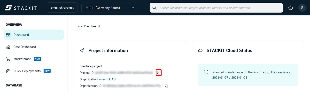 - Open the project in the STACKIT Portal.