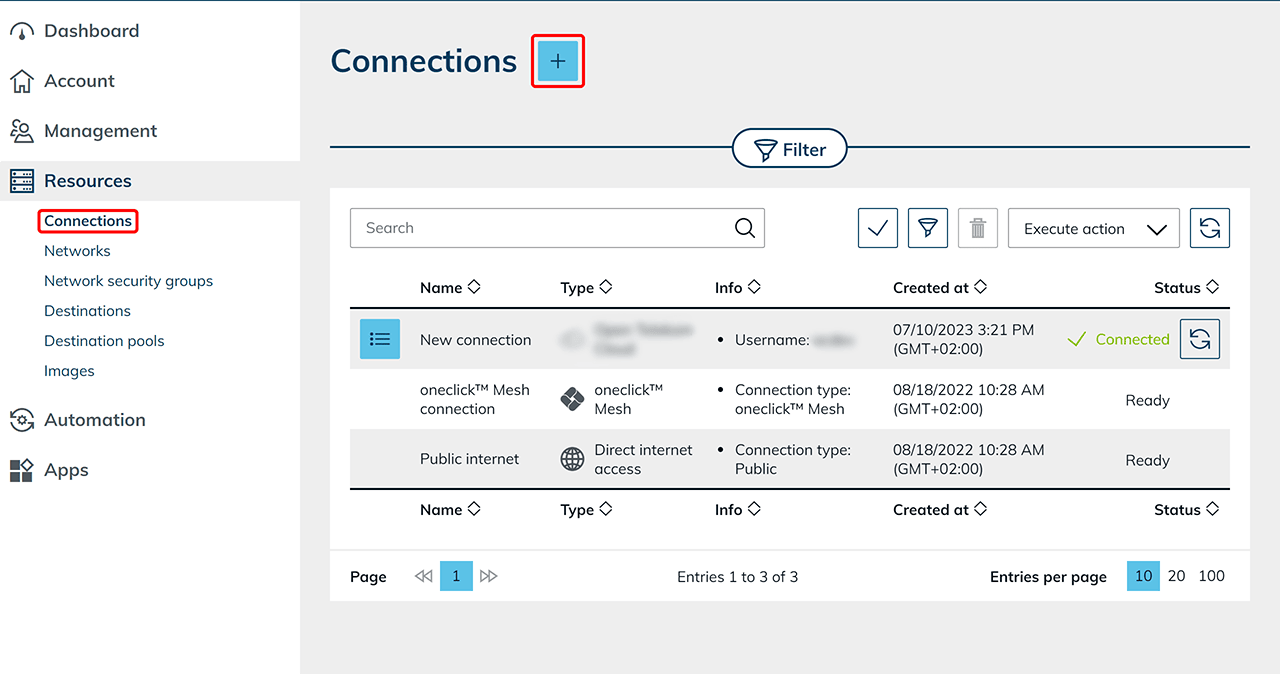 - In the Resources tab, click Connections.