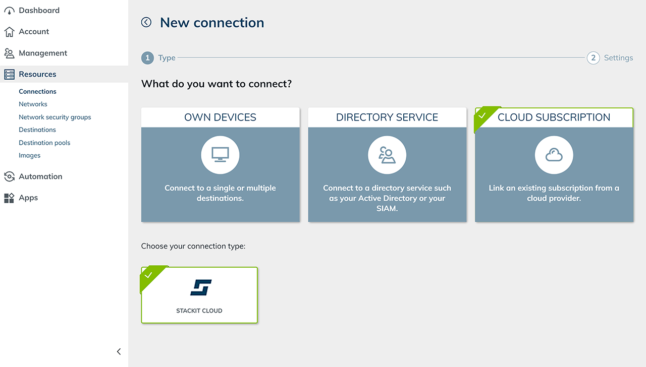 6. Connect the STACKIT subscription in the oneclick™ Admin