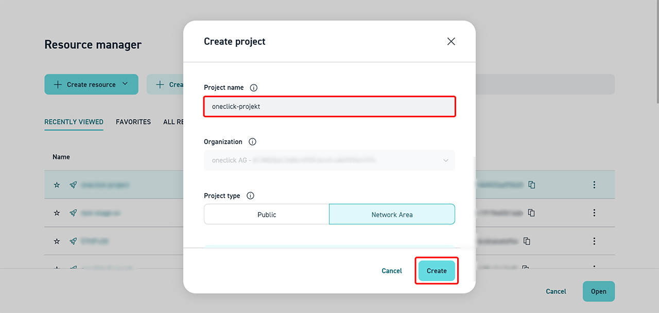 - Create new firewall rules oneclick™. You can set these in the settings of each cloud resource. The firewall rules you are defining here will be added to the oneclick™ Network Security Group in StackIT.