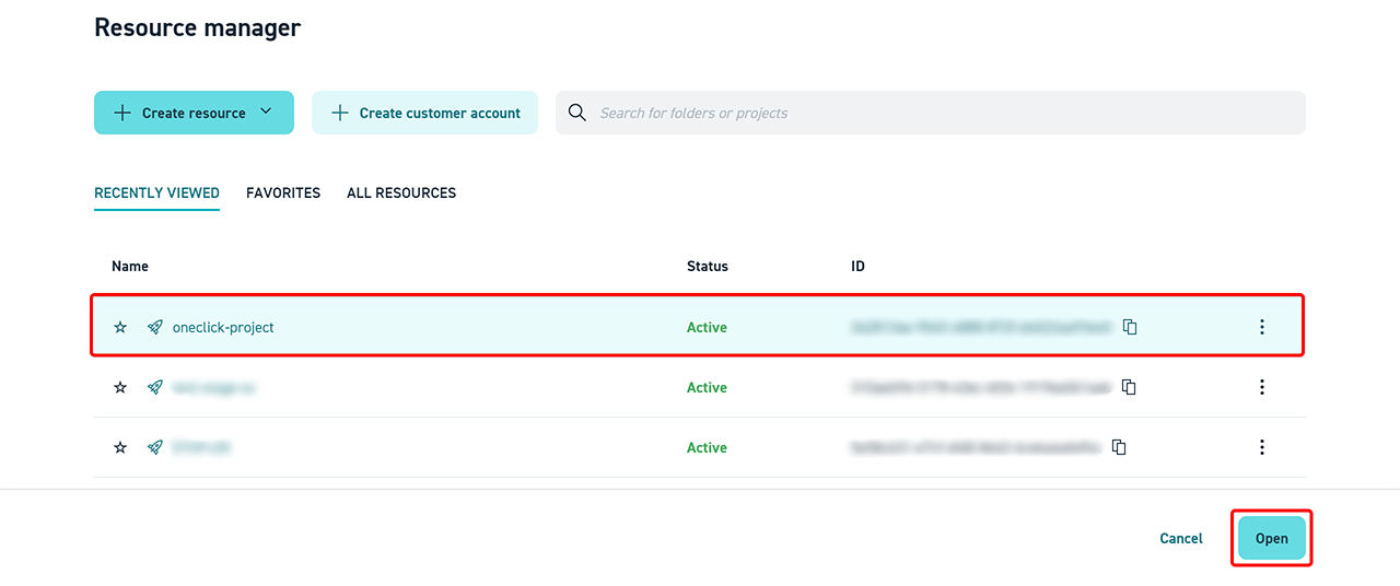 - Click the newly created Project and then click Open.