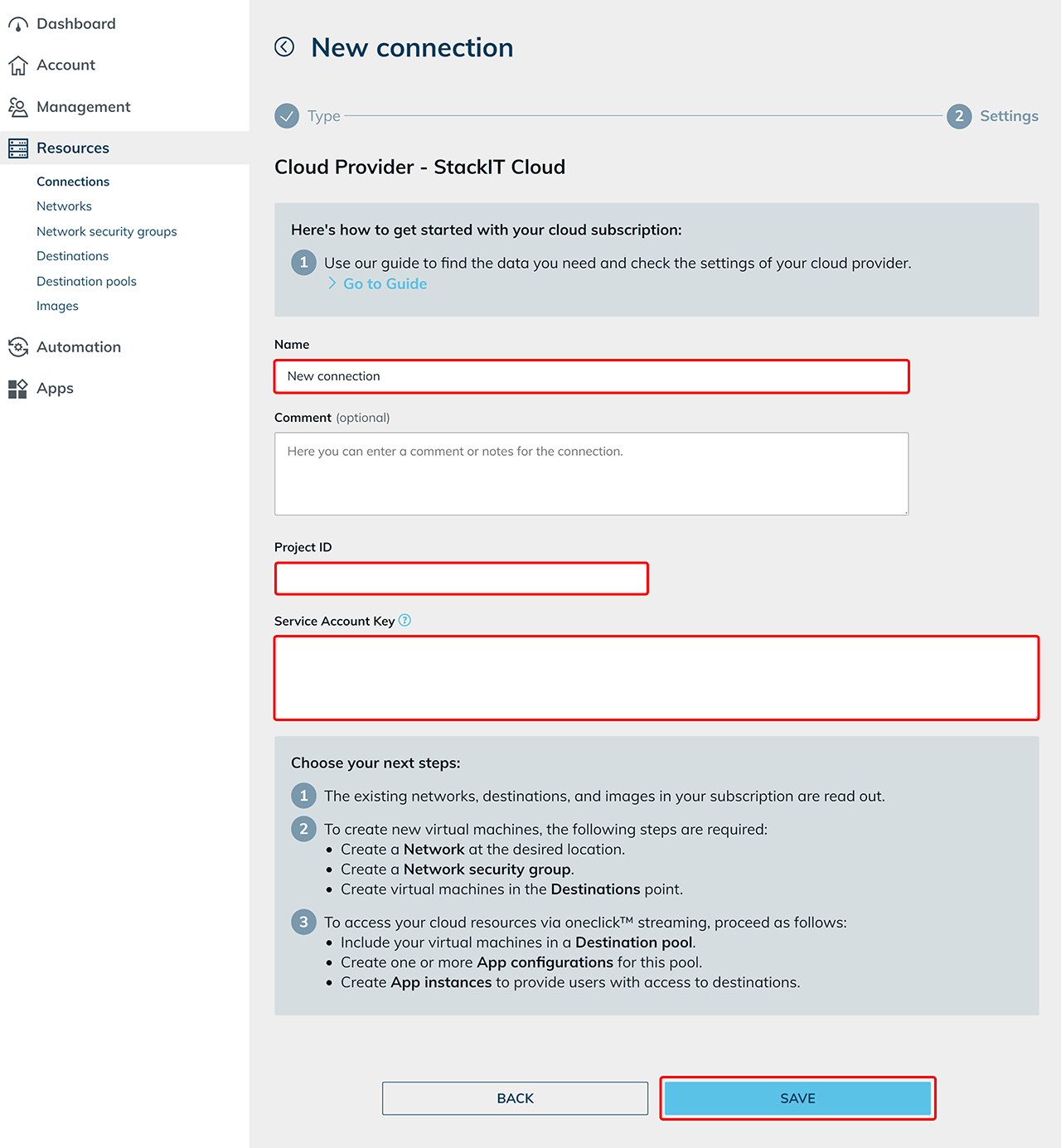 6. Connect the STACKIT subscription in the oneclick™ Admin