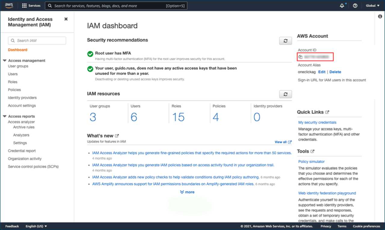 Um Ihr eigenes, bereits vorhandenes AWS Abonnement in oneclick™ zu verlinken, benötigen Sie einige Daten aus Ihrem Abonnement.