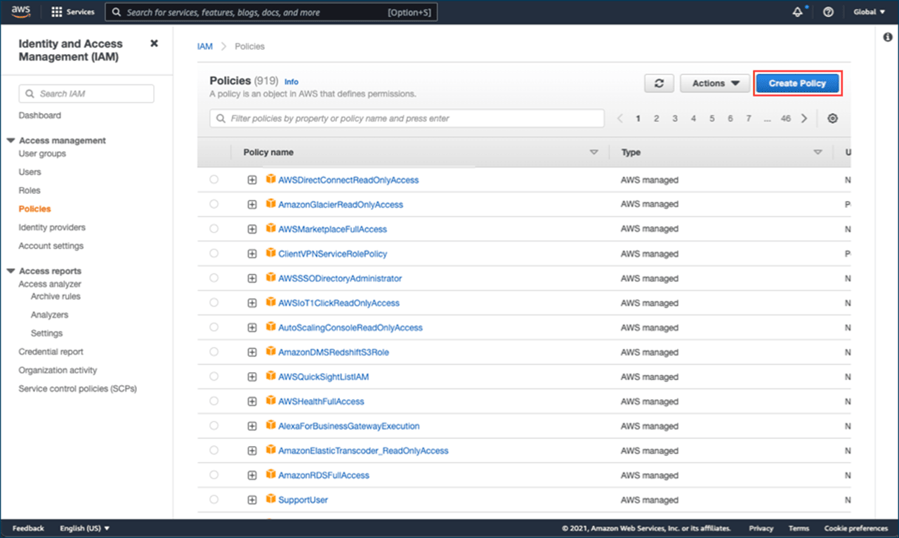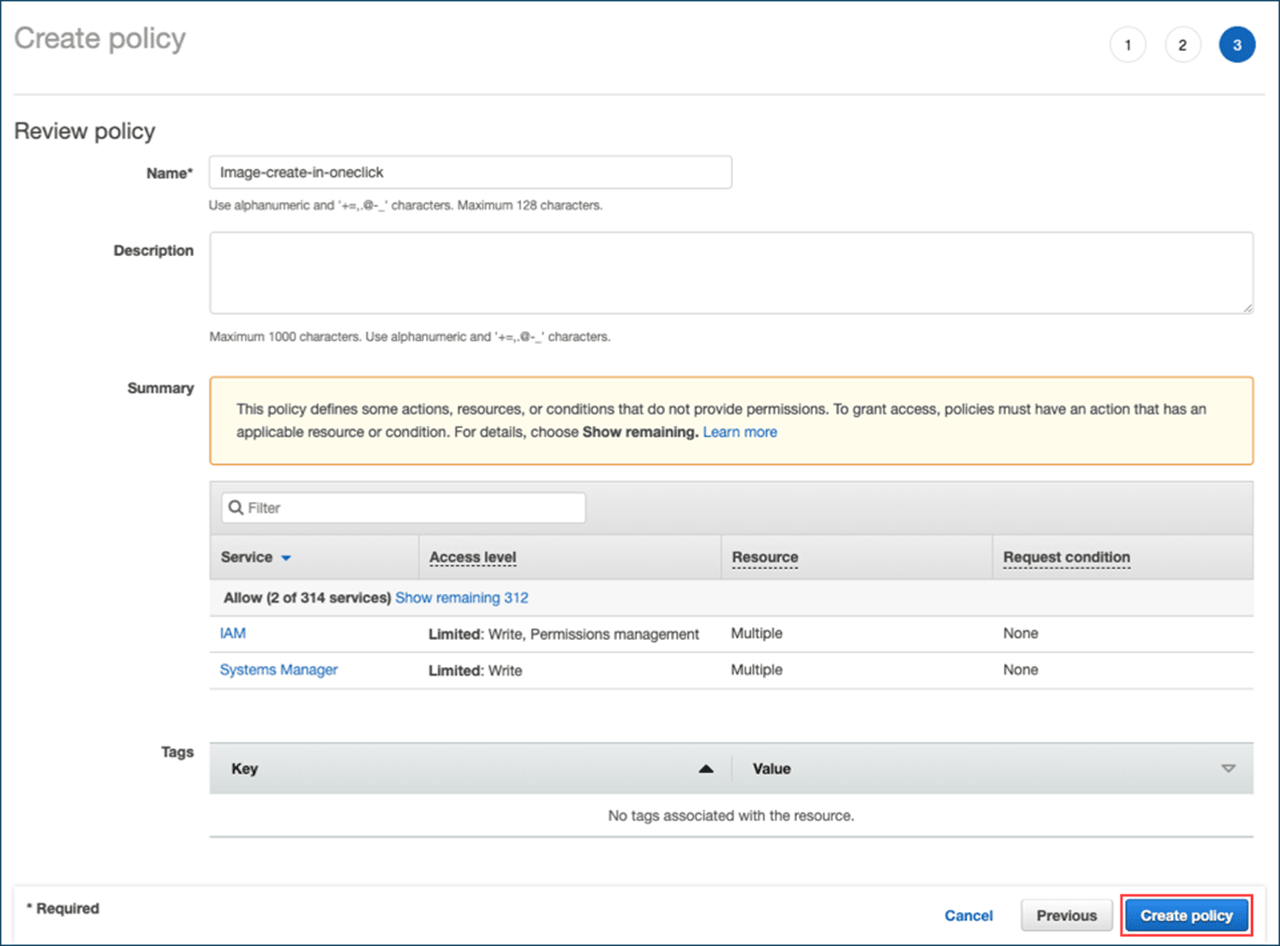 Klicken Sie auf Next, benennen Sie die Policy z.B. “Image-create-in-oneclick” und klicken dann auf Create Policy.