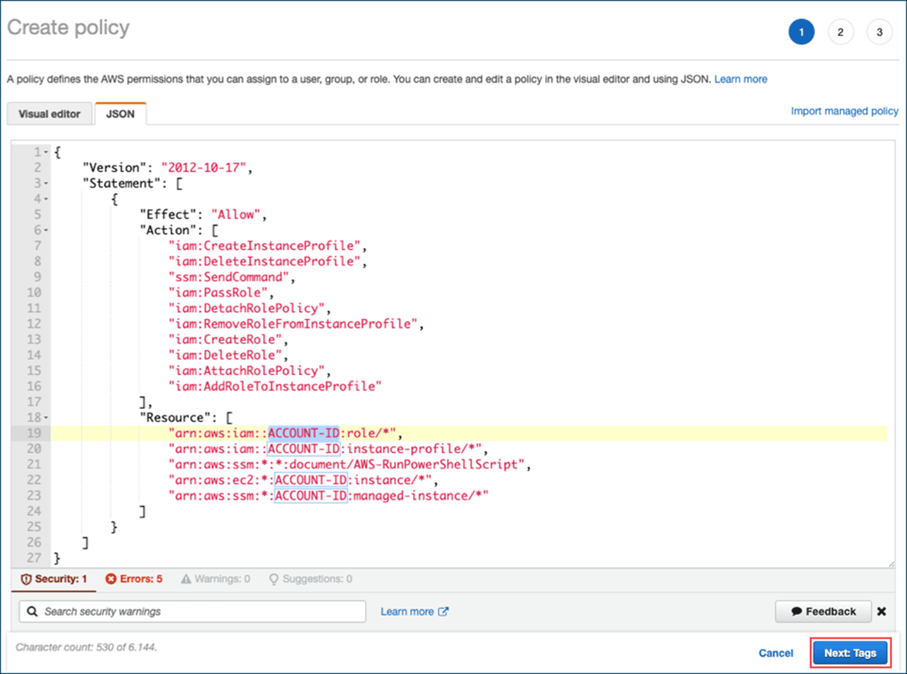 "arn:aws:ec2:*:ACCOUNT-ID:instance/*",