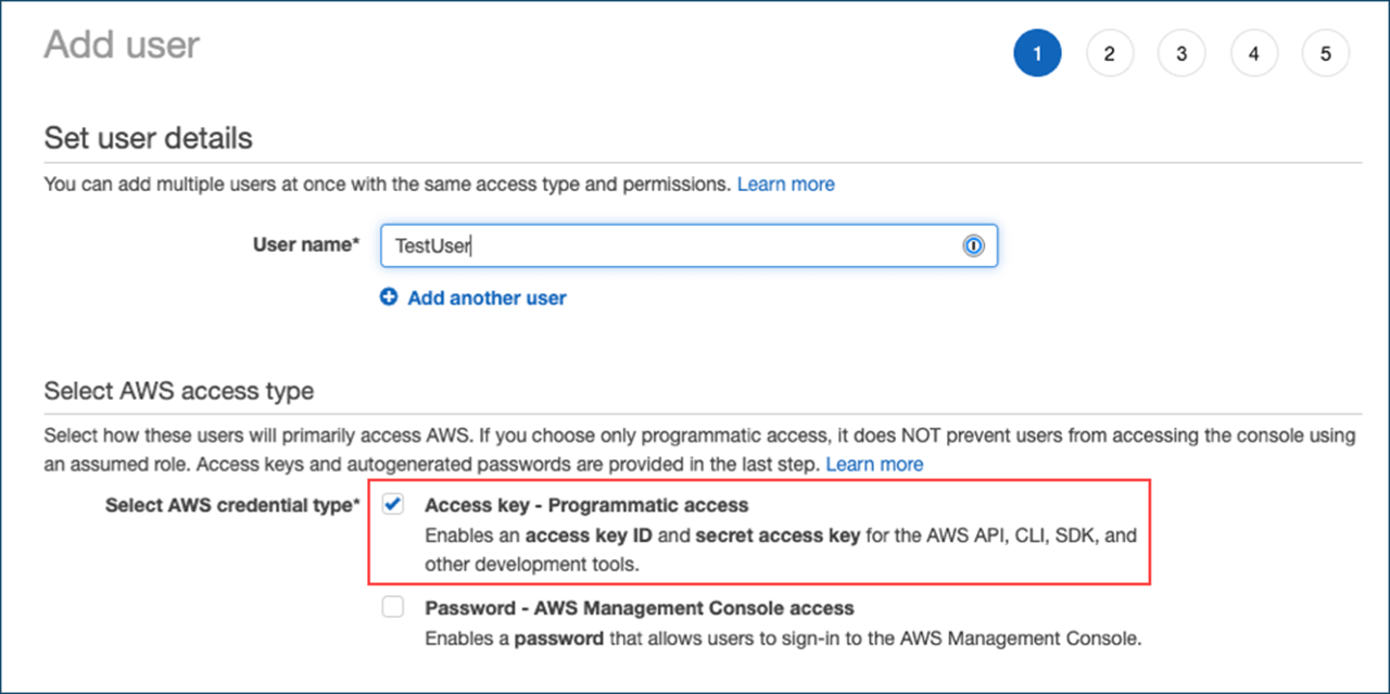 Tragen Sie den Benutzernamen ein und setzen Sie einen Haken bei Access key – Programmatic access. Klicken Sie auf Next.