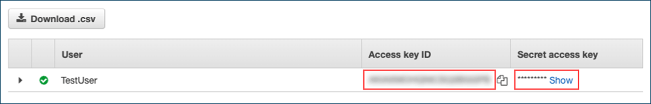 Aus der folgenden Ansicht können Sie sich “Access key ID” und “Secret access key” kopieren um diese in oneclick™ einzufügen.