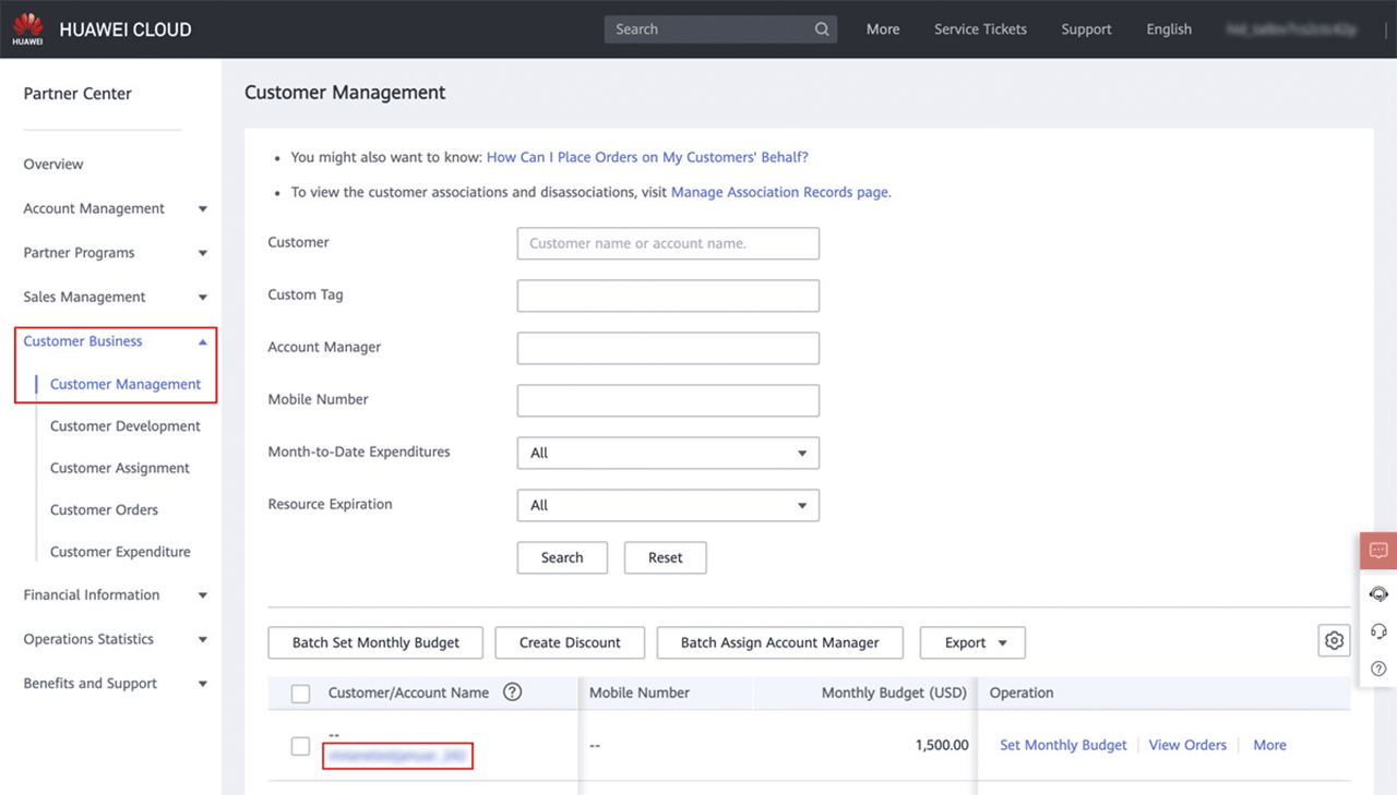 - Wenn Sie einen Partner-Account in Huawei besitzen und darunter Kunden-Accounts angelegt haben, können Sie diese Kunden-Accounts in oneclick™ verbinden (nächster Punkt).