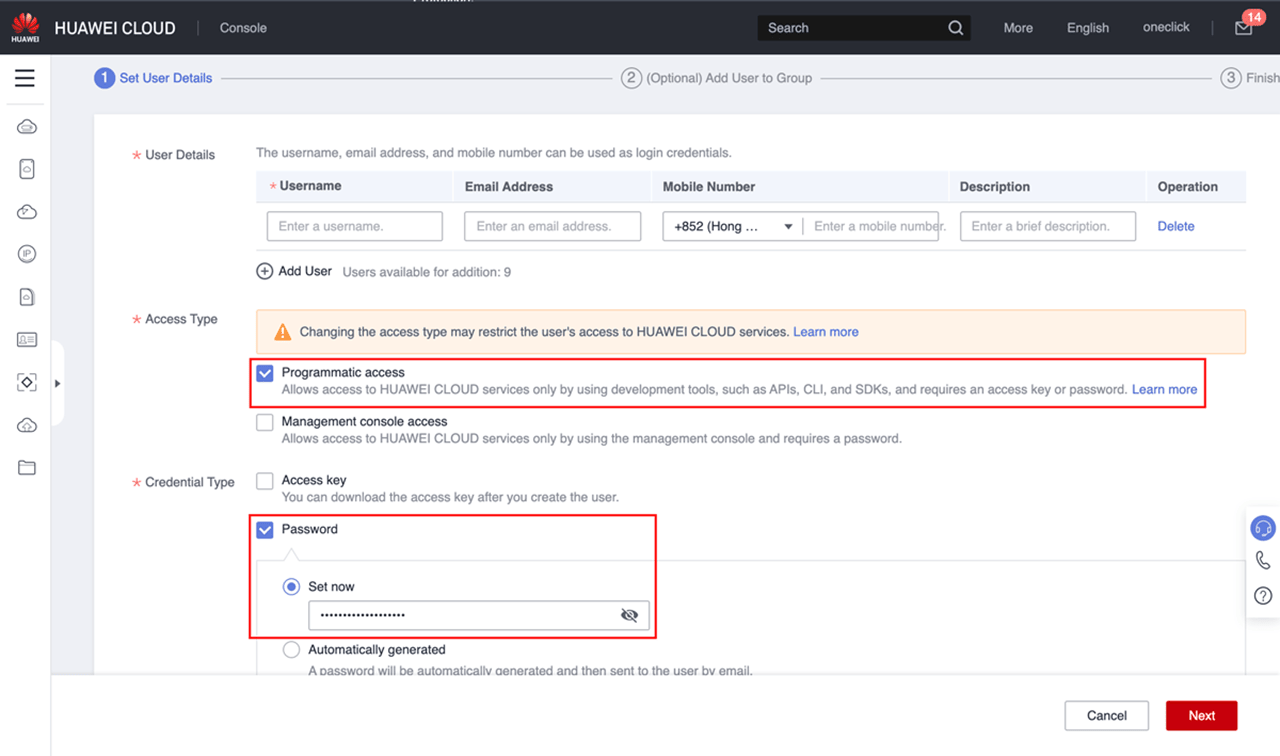 - Ändern Sie das Passwort in der Huawei Cloud indem Sie alle Schritte aus der Anleitung “Daten aus dem Huawei Abonnement” unter Punkt 5 wiederholen.