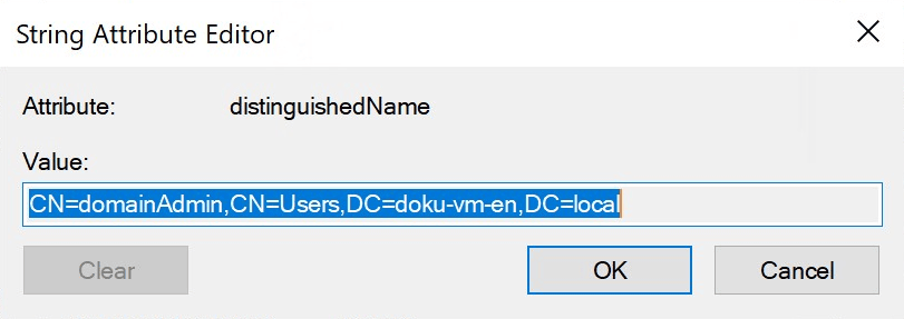 Doppelklicken Sie auf den Eintrag distinguishedName.