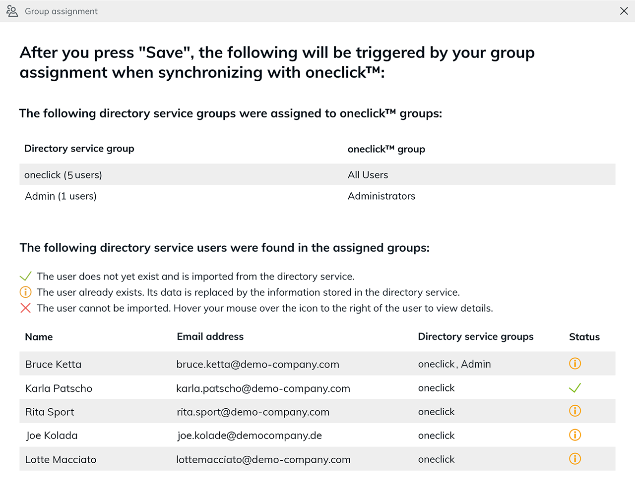 Wenn Sie eine neue Gruppe aus dem Active Directory in oneclick™ importieren möchten, führen Sie den Import erneut durch, wie in diesem Artikel beschrieben.