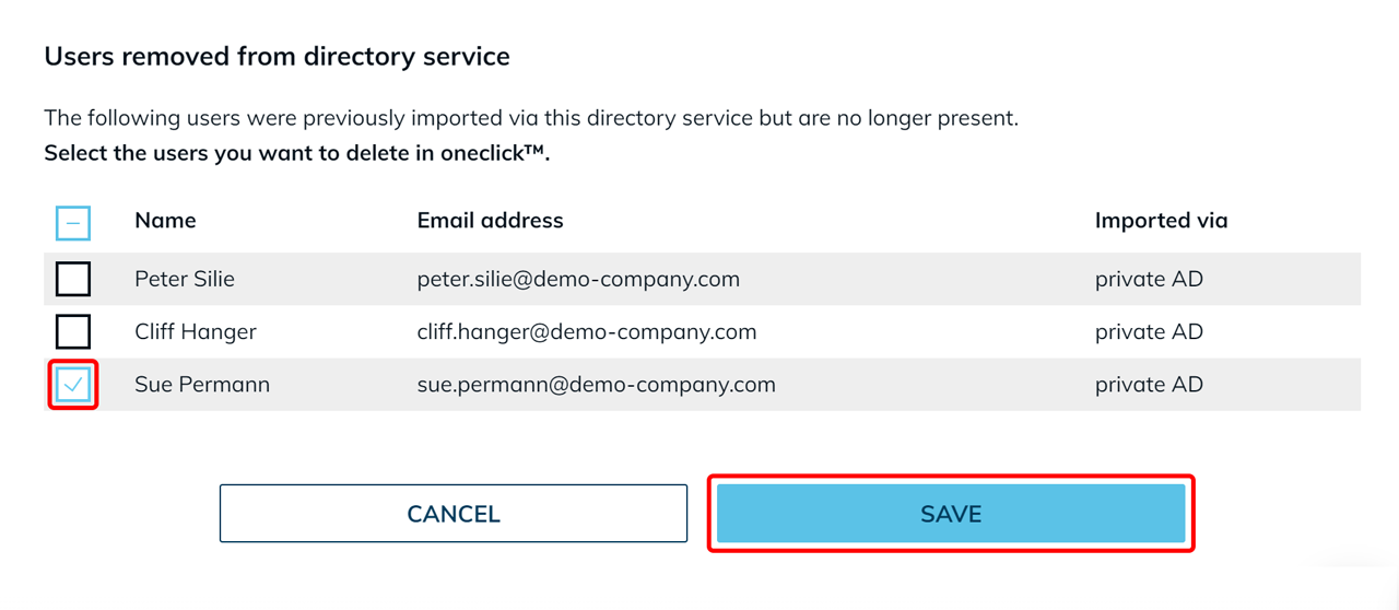 - Wählen Sie die Benutzer aus, die in oneclick™ gelöscht werden sollen.
