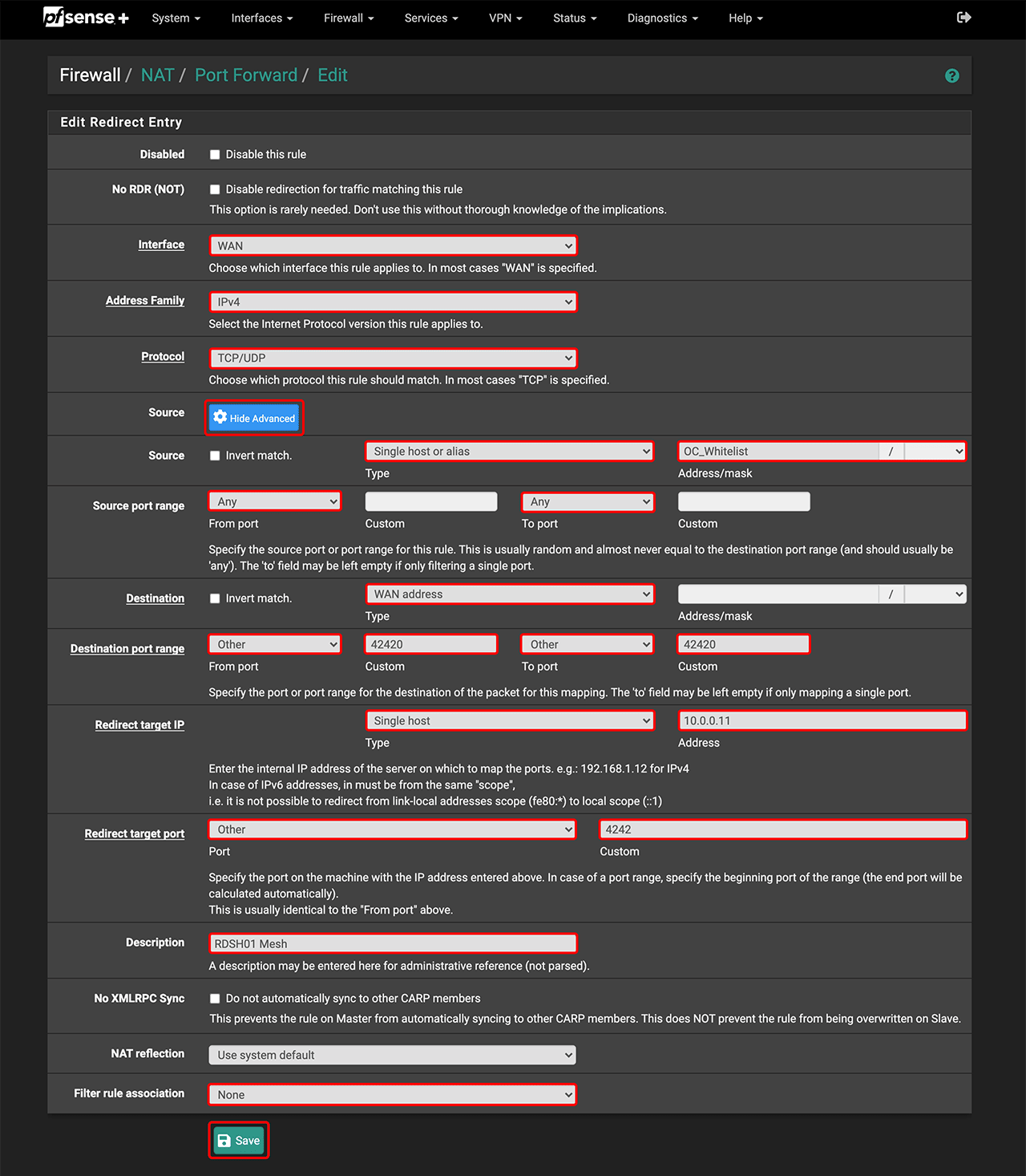 - Wählen Sie als „Ziel“ die WAN Adresse.
