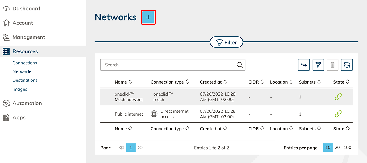 Klicken Sie im Netzwerk Menüpunkt auf das + Symbol