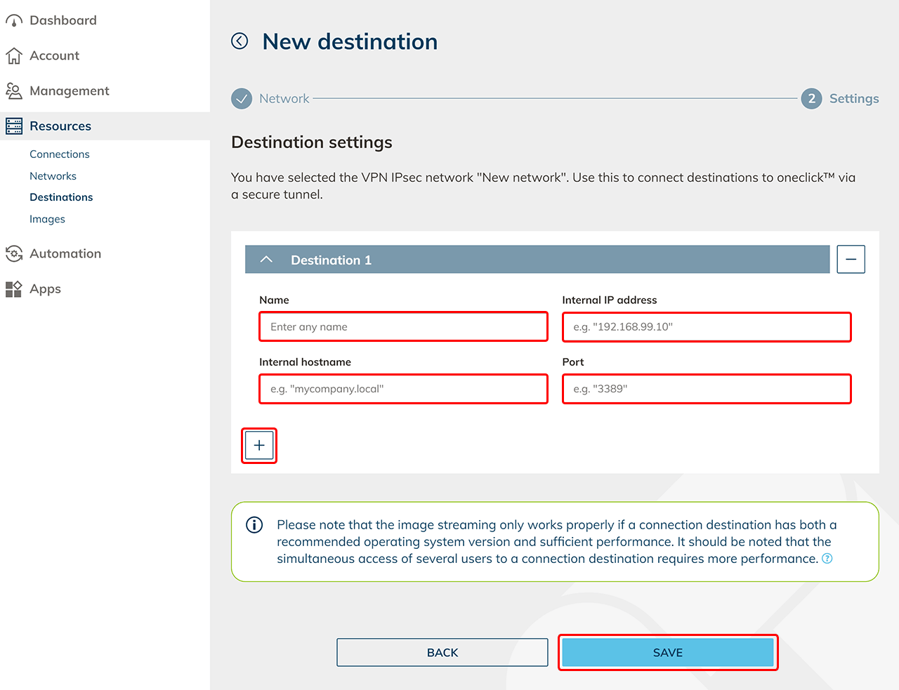 - Stellen Sie sicher, dass oneclick™ über VPN auf die gewünschten lokalen Zielnetzwerke zugreifen kann.