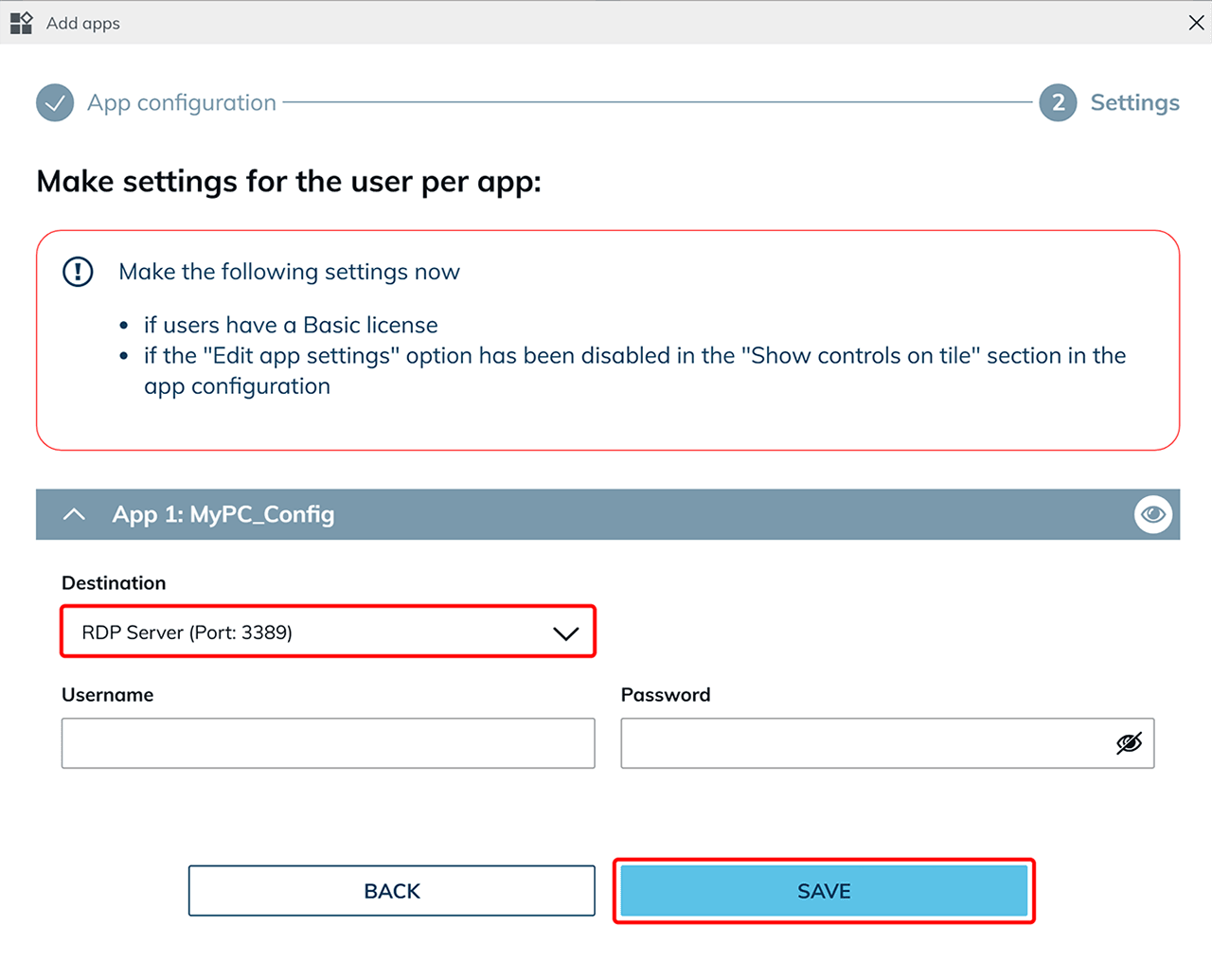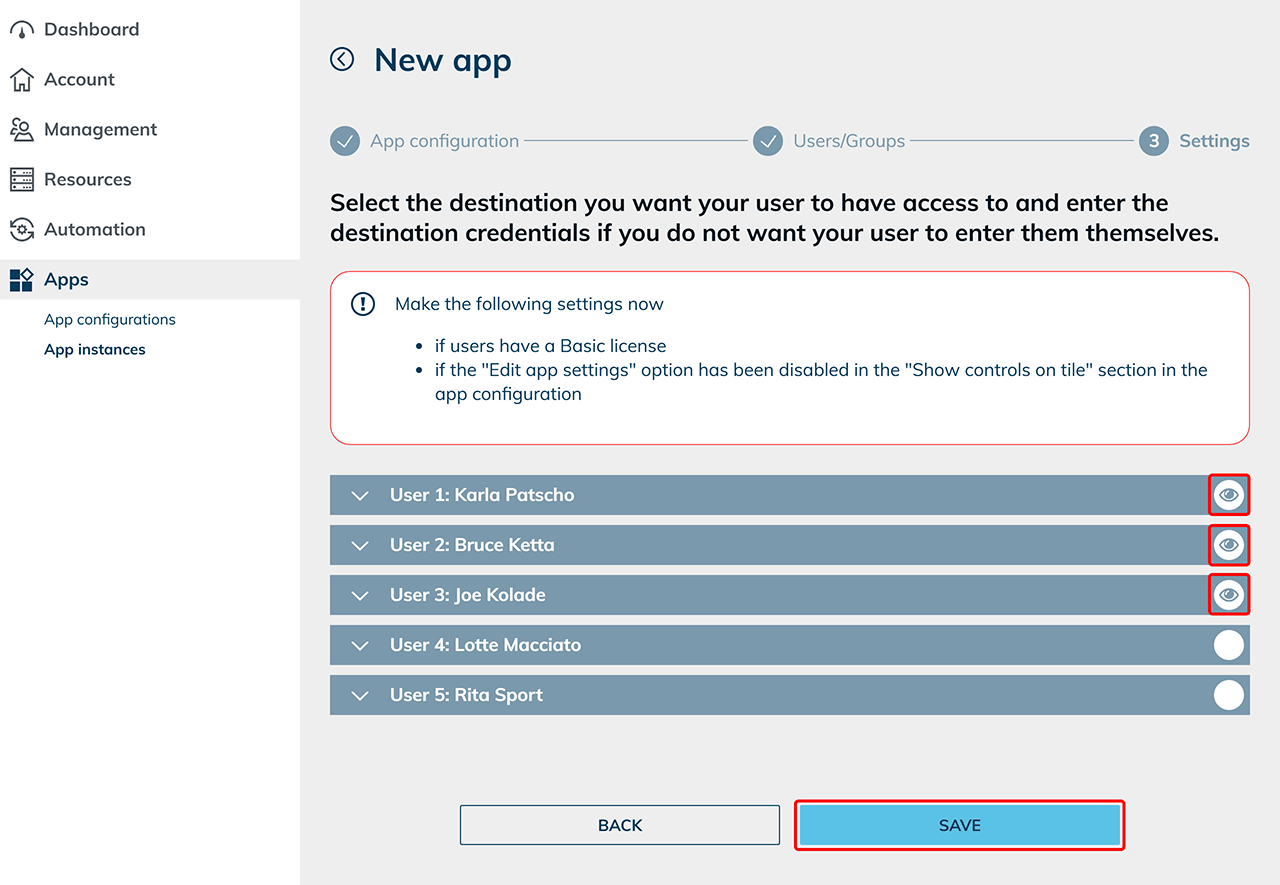 Jetzt können Sie ggfs. Einstellungen für den Benutzer pro App vornehmen. Klicken Sie auf Speichern.