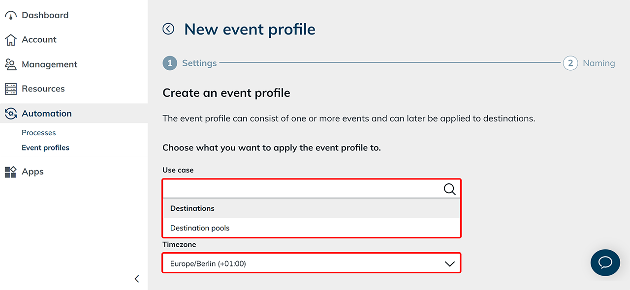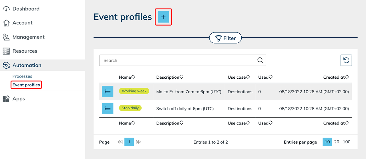 - Öffnen Sie Automatisierung und klicken Sie auf Eventprofile.