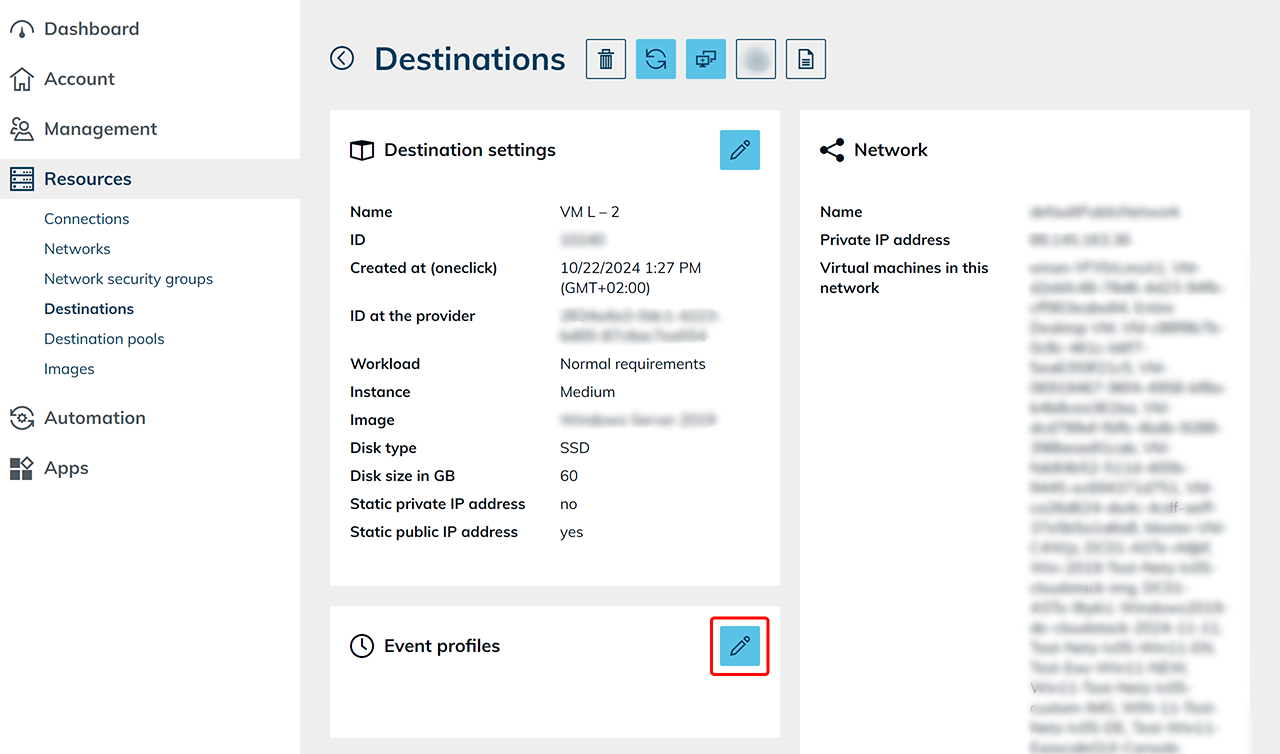 - Klicken Sie in der Detailansicht auf der Kachel „Eventprofile“ auf das Stift-Symbol.