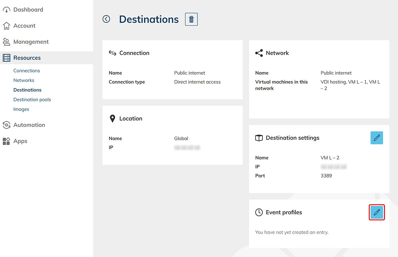 - In der Detailansicht klicken Sie auf der Kachel „Eventprofile“ auf das Stift-Symbol.