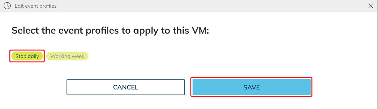 Um unerwartete Kosten zu vermeiden, empfehlen wir immer einen Zeitpunkt zum Stoppen der virtuellen Maschine anzugeben. Somit wird verhindert, dass eine virtuelle Maschine z.B. über einen Urlaub hinweg läuft.