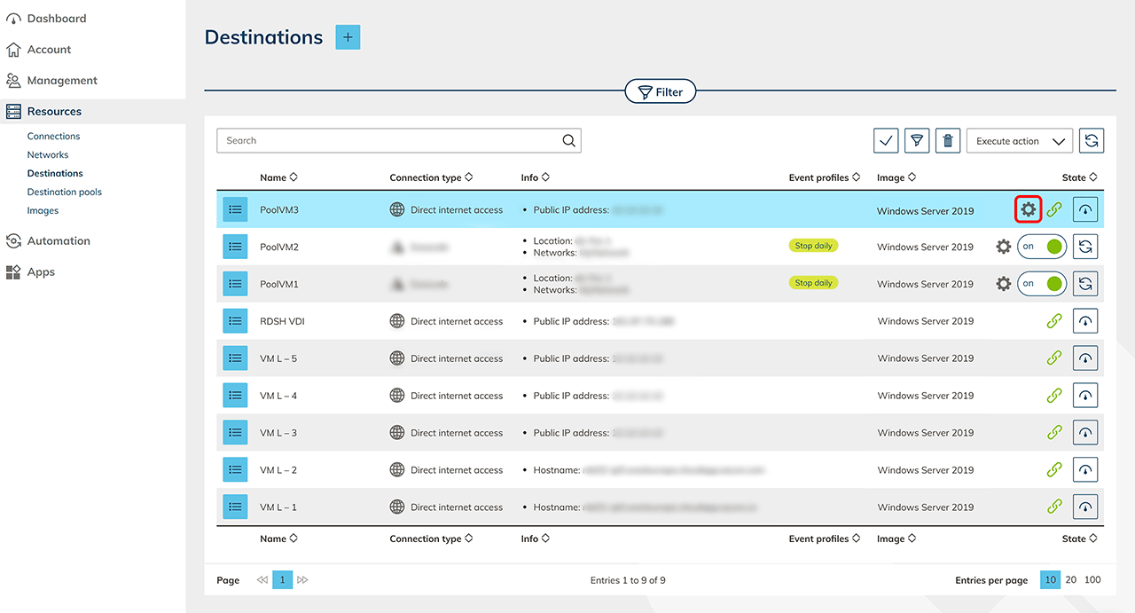 Falls neben der Bezeichnung Ihrer Ressource kein Zahnrad-Symbol zu sehen ist, muss diese zunächst für die Prozessausführung vorbereitet werden. Folgen Sie hierzu den unten angegebenen Schritten.