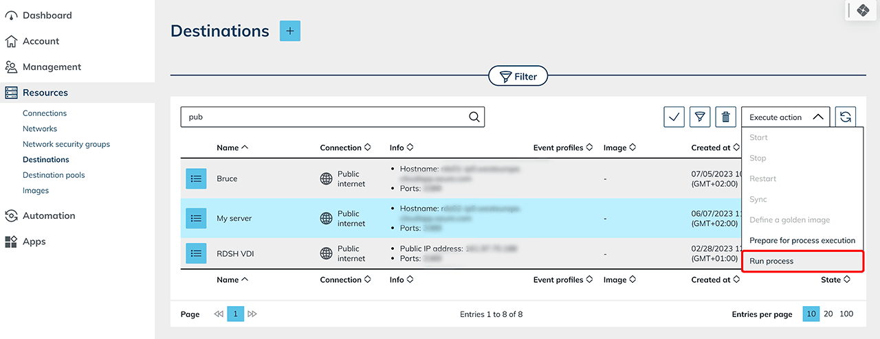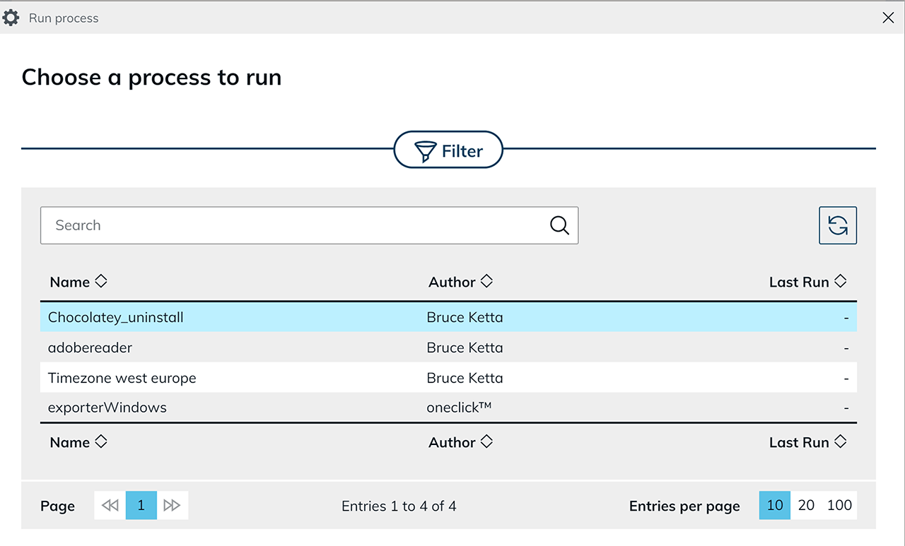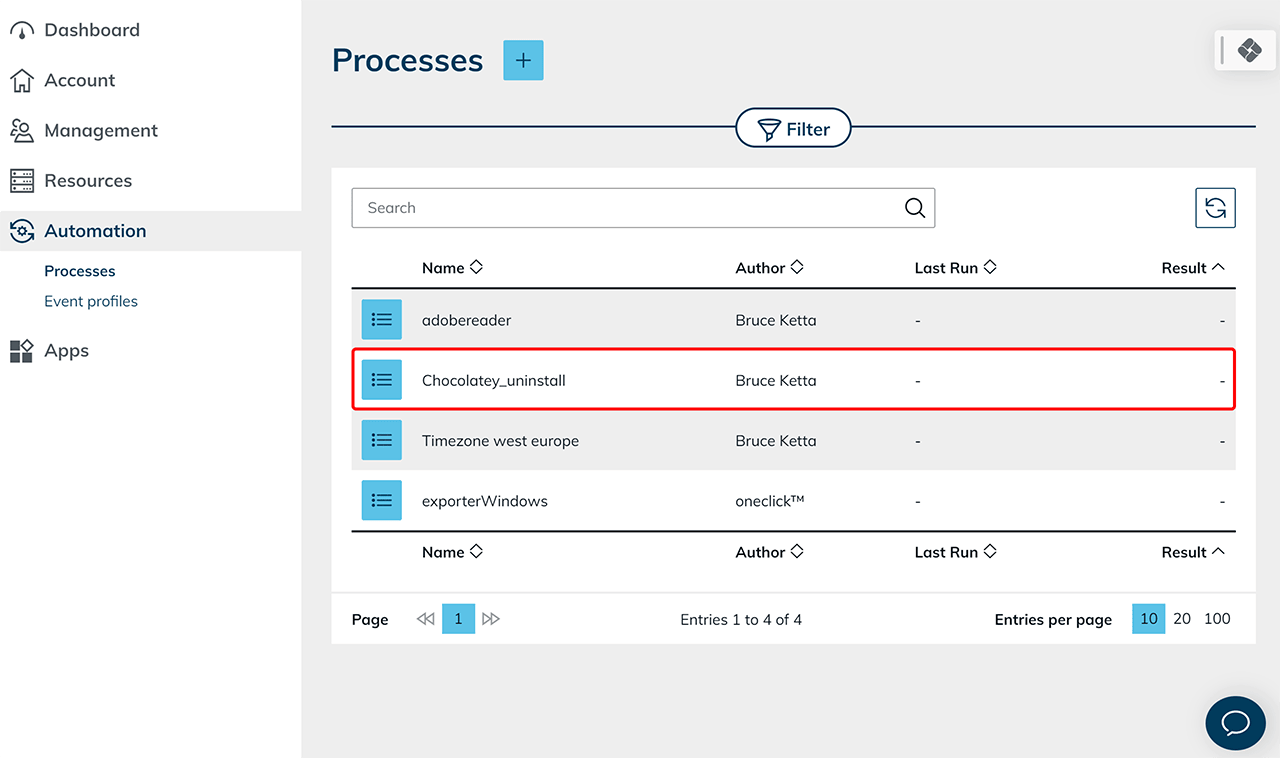 - Wählen Sie in dem neu geöffneten Fenster den Prozess aus, den Sie zur Deinstallation von Software auf Ihren Ressourcen erstellt haben.