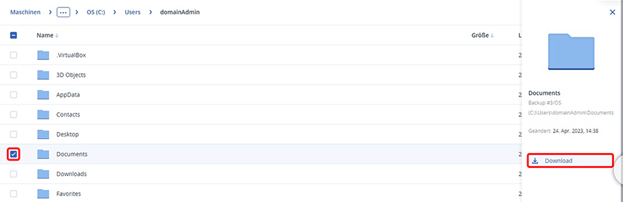 Die heruntergeladenen Sicherungsdateien finden Sie standardmäßig im Download-Ordner.