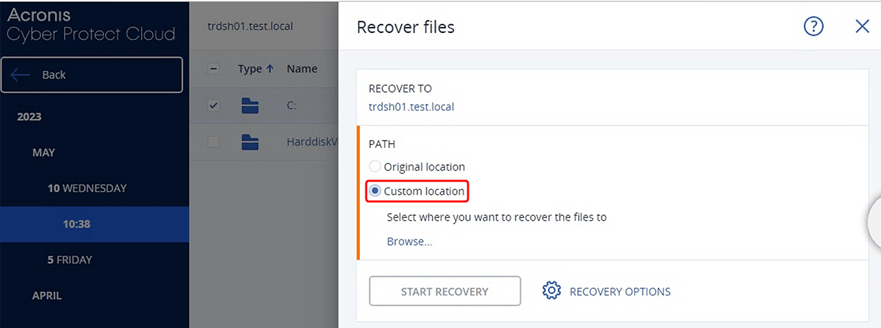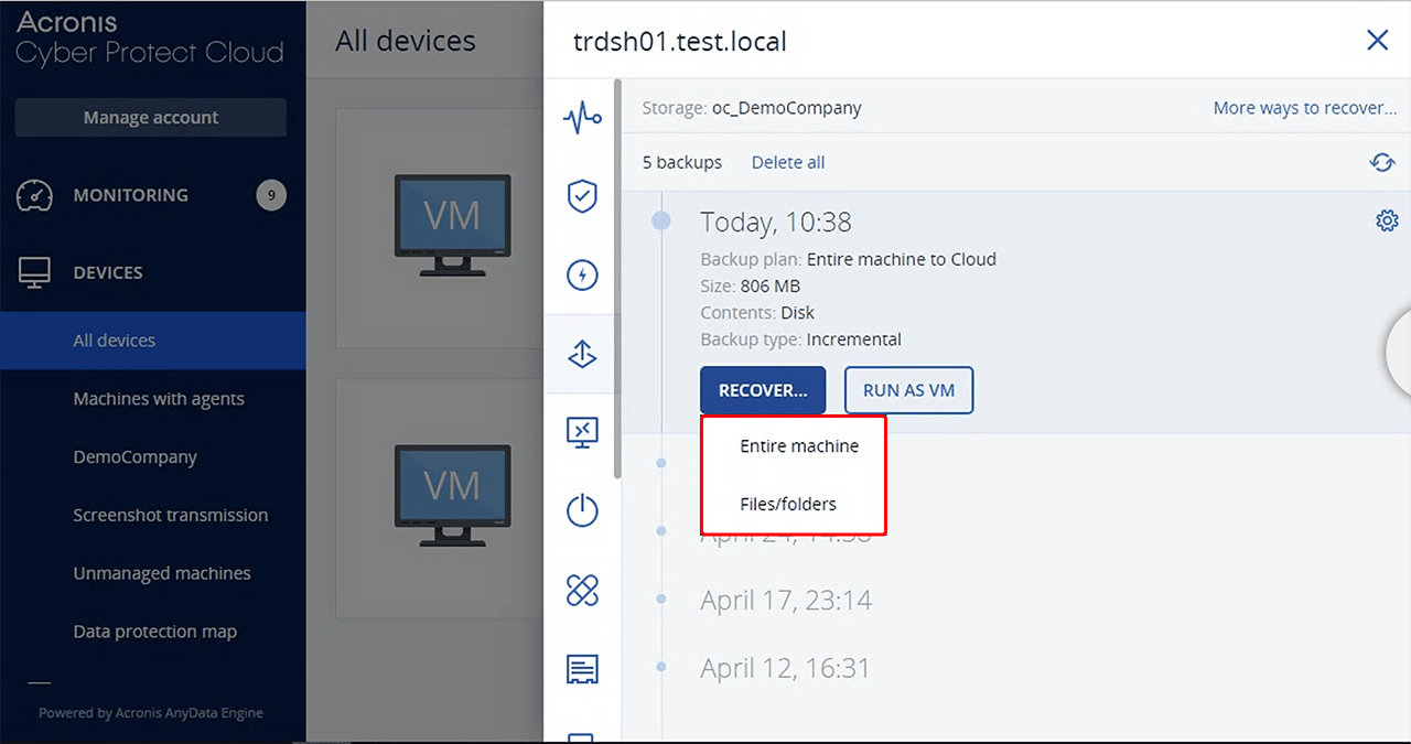 Wählen Sie den gewünschten Server, den Sie wiederherstellen möchten und klicken Sie auf Recover.