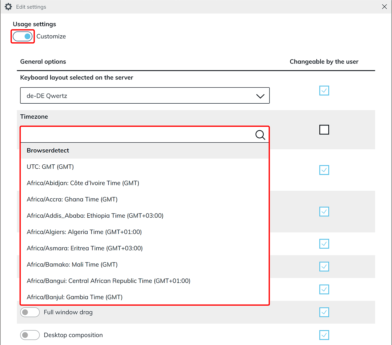 - Unter „Nutzungseinstellungen“ wählen Sie die Option Anpassen und nehmen Sie Ihre gewünschten Änderungen unter „Zeitzone“ vor. Abschließend Speichern Sie Ihre Einstellungen.