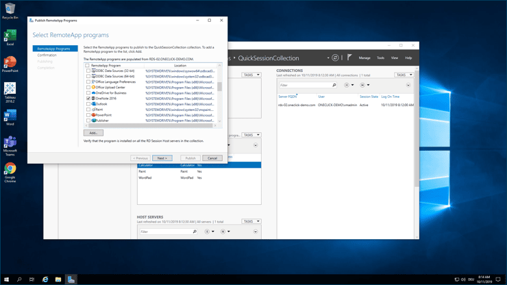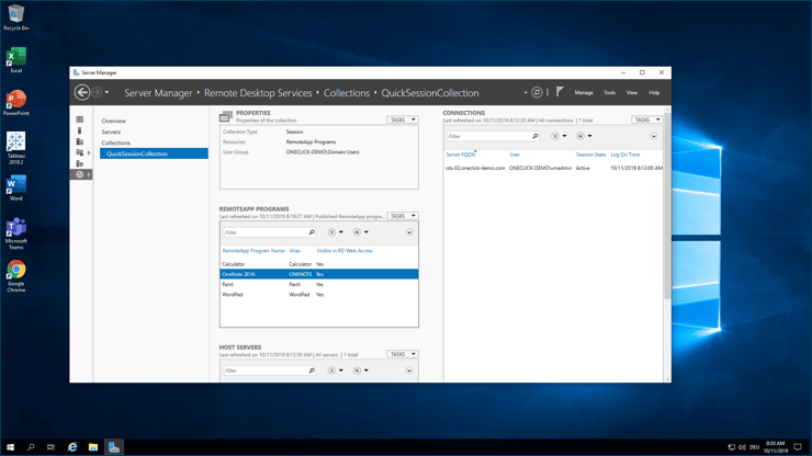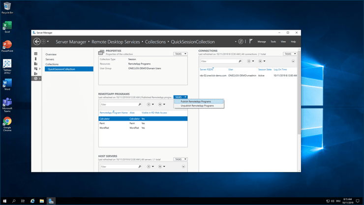 - Gehen Sie auf Ihrem Server in den Server-Manager / Remotedesktop-Dienste / Sammlungen / QuickSessionCollection.