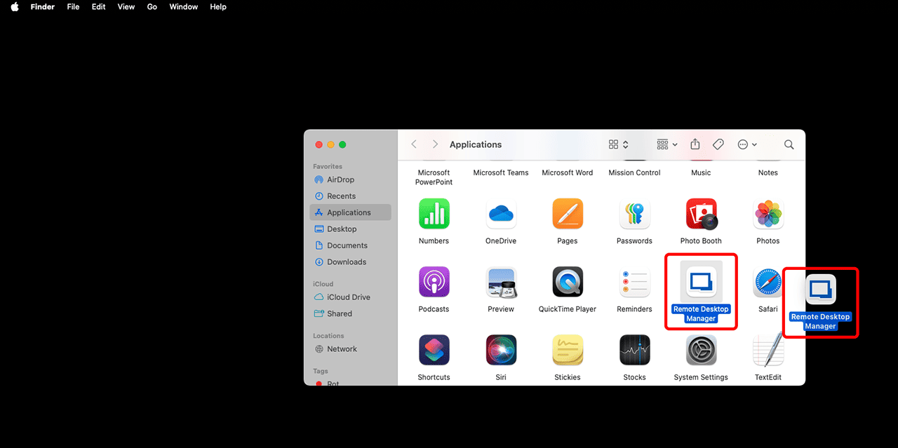 - Ziehen Sie die App „Remote Desktop Manager“ mit gedrückter Cmd + Alt -Taste auf den Schreibtisch.