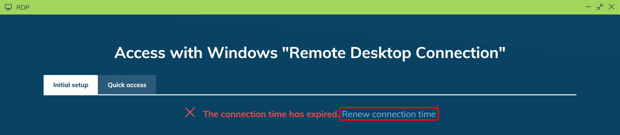 - Klicken Sie auf das Verbindungszeit erneuern, um neue Zugangsdaten zu generieren.