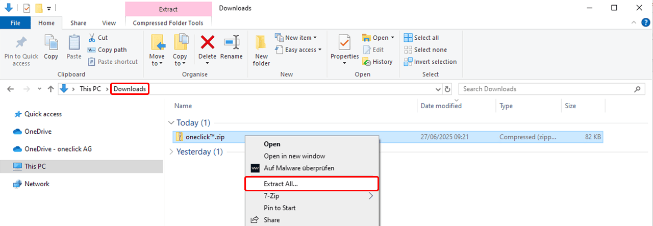 - Verschieben Sie die entpackte Datei oneclick™.ico in einen Ordner Ihrer Wahl, ( z. B. nach