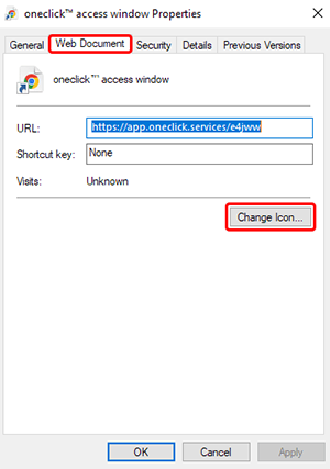 Sie können das Symbol der Verknüpfung durch das oneclick™ Icon ersetzen.