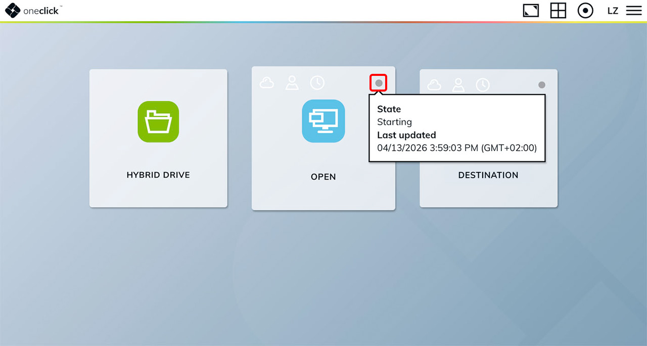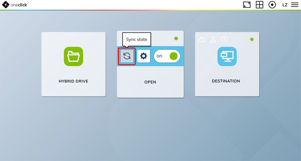Mit einem Klick auf das Synchronisations-Symbol kann der Status der Maschine aktualisiert werden. Verwenden Sie diese Funktion, wenn Ihre Maschine von jemand anderem (z.B. Ihrem Administrator) an- oder ausgeschaltet wurde oder wenn die Möglichkeit besteht, dass Ihre VM direkt über den Cloud-Provider an- oder ausgeschaltet wurde und nicht über oneclick™.
