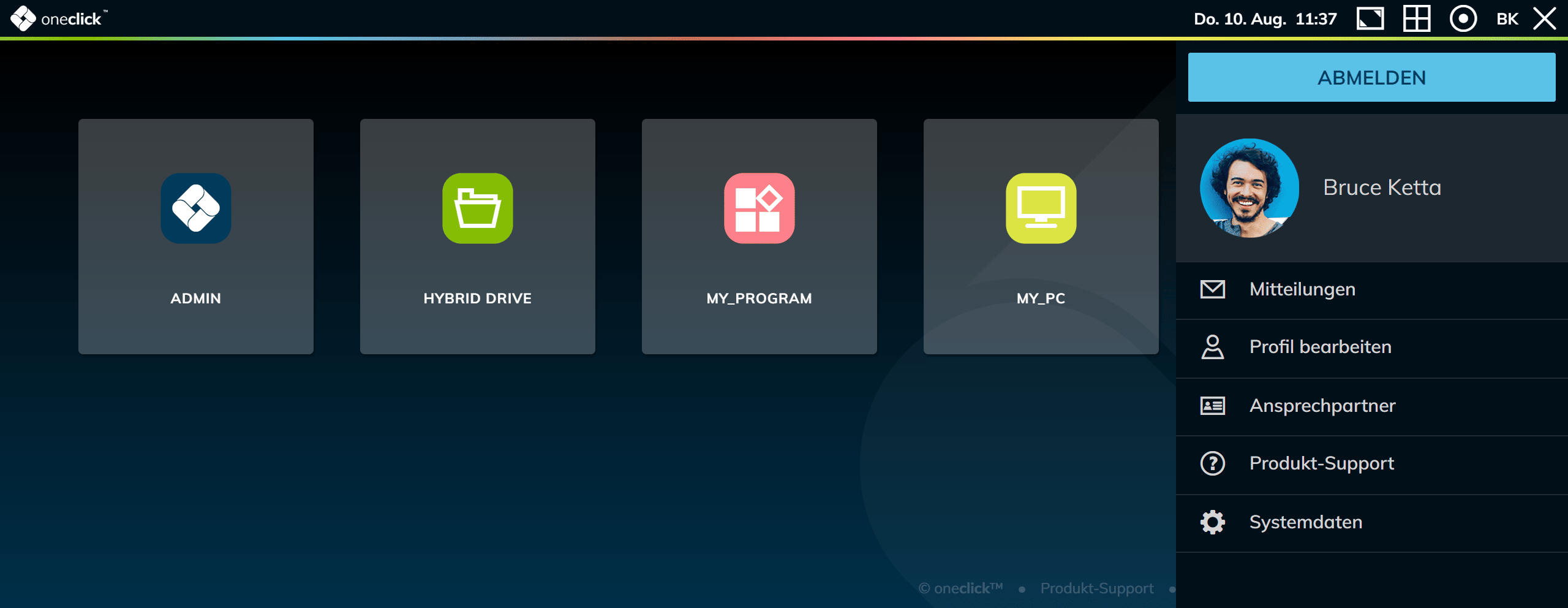 Das Desk-Menü von oneclick™ ermöglicht es Ihnen, Ihre Arbeitsumgebung optimal zu verwalten und anzupassen. Im Folgenden finden Sie eine detaillierte Erklärung der verschiedenen Funktionen im Desk-Menü.