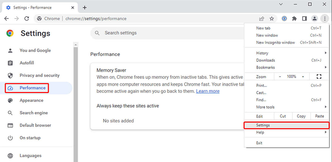 In Google Chrome wurde mit der Version (111.0.5563.111) unter anderem das Feature „Arbeitsspeicher-Sparmodus“ integriert. Ist dieser aktiviert, wird der Arbeitsspeicher von inaktiven Tabs freigegeben, um Ressourcen zu sparen und mehr Arbeitsspeicher für aktive Fenster einsetzen zu können. Minimieren Sie also das Fenster, in welchem oneclick™ geöffnet ist, oder setzen Sie den entsprechenden Tab Ihres Browsers in den Hintergrund, kann es sein, dass Chrome auch hier den Arbeitsspeicher freigibt. Hierdurch kann es zu einem Verbindungsverlust zum Server kommen. Auch in anderen Browsern wie Opera oder Microsoft Edge existieren ähnliche Funktionen, die zu Verbindungsproblemen führen können.