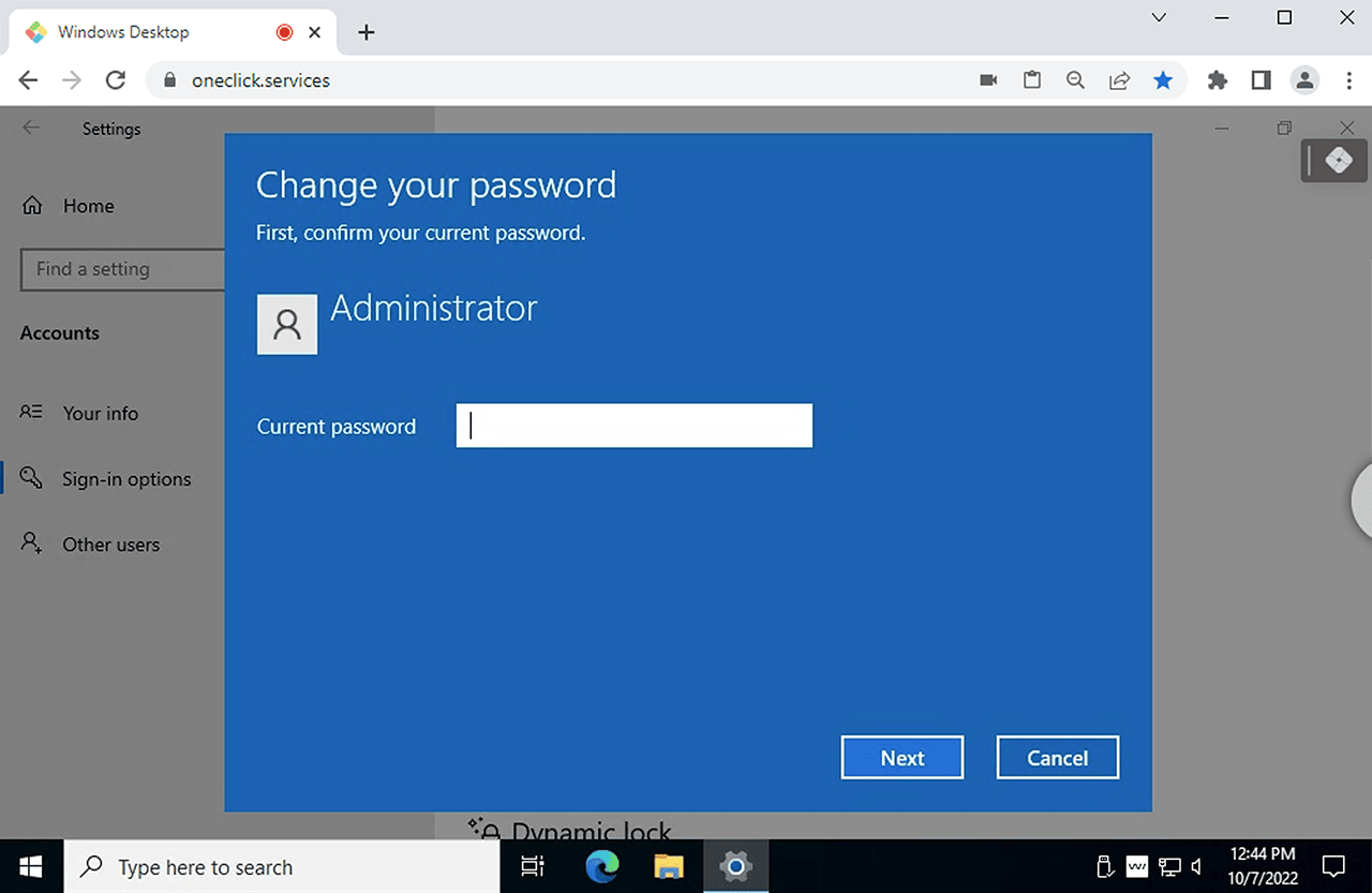 Wenn Sie Ihr aktuelles Windows-Passwort kennen und es ändern möchten, gehen Sie folgendermaßen vor. Es handelt sich nicht um das Passwort, mit dem Sie sich in oneclick™ einloggen. Bei Fragen hierzu, wenden Sie sich an Ihren Systemadministrator.