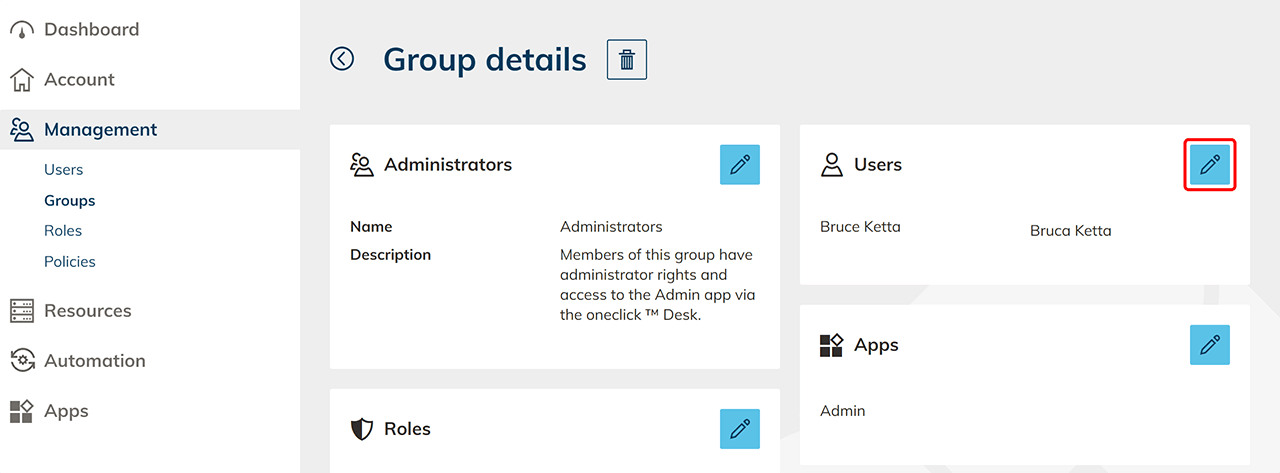 In the tile "User" you can see which user was withdrawed from the group Please notice that the access data for the deleted app will also be deleted.