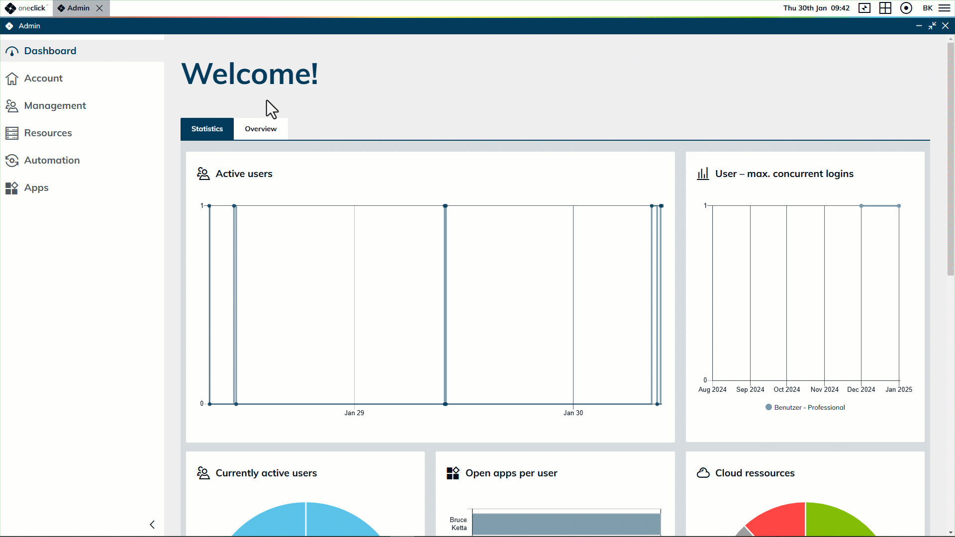 The displayed usage does not affect the billing of oneclick™ licenses and serves solely as an informative overview of usage.