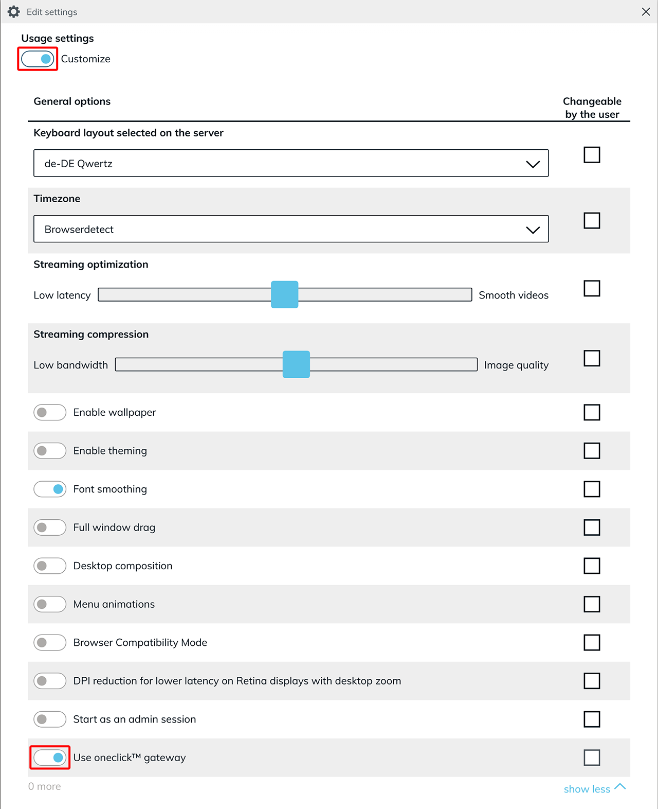 In addition to the established oneclick™ streaming in the browser, we now offer the option to use the oneclick™ Gateway. This allows your users to access remote destination systems using the built-in Remote Desktop Connection on Windows or the Remote Desktop Manager app on Mac and Linux.