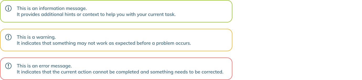 Info boxes now clearly differentiate between warnings and errors, making system messages easier to understand and act on.
