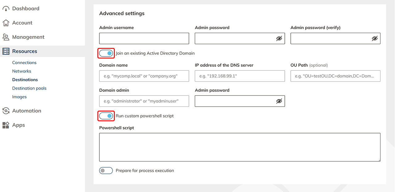 Optionally, with some cloud providers you can join an existing Active Directory with this VM or run a user-defined PowerShell script directly on a VM with a Windows environment.