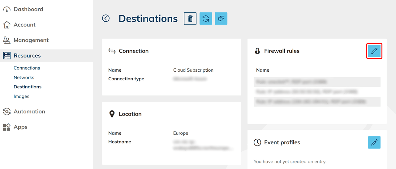 - Click on the Synchronization icon in the row of your cloud connection to read out your cloud resources again.
