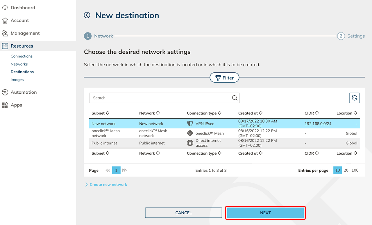 Next, create a destination pool in which you can include one or more destinations that belong together. This step is not necessary if you want to connect an internal website or a private Active Directory.
